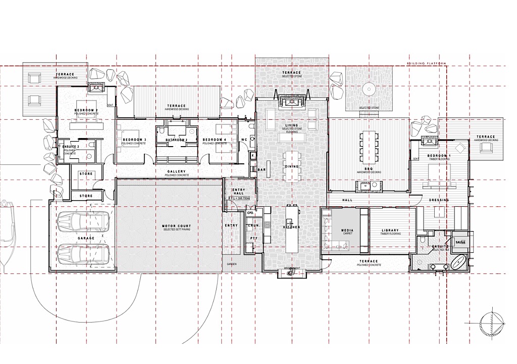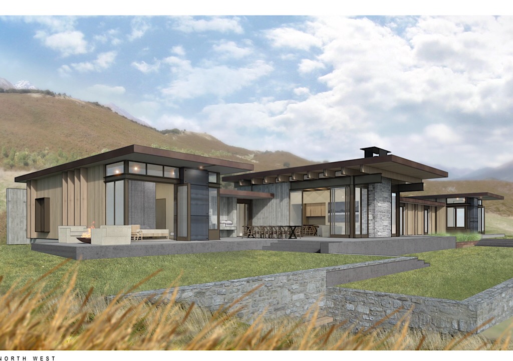 Design Brief to combine low-slung Neutra volumes with NZ rustic